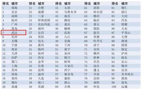 经济发展领先城市排名,武汉位居第10位