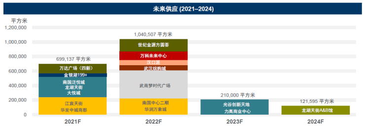展望2021年,武汉零售市场预计将迎来包括大悦城、江宸天街、华发中城商都等在内的约70.0万平方米的新增供应。从区位来看,新增供应将主要集中于老牌核心商圈,其中鲁巷商圈和武广商圈将是今年优质零售供应的主要区域。