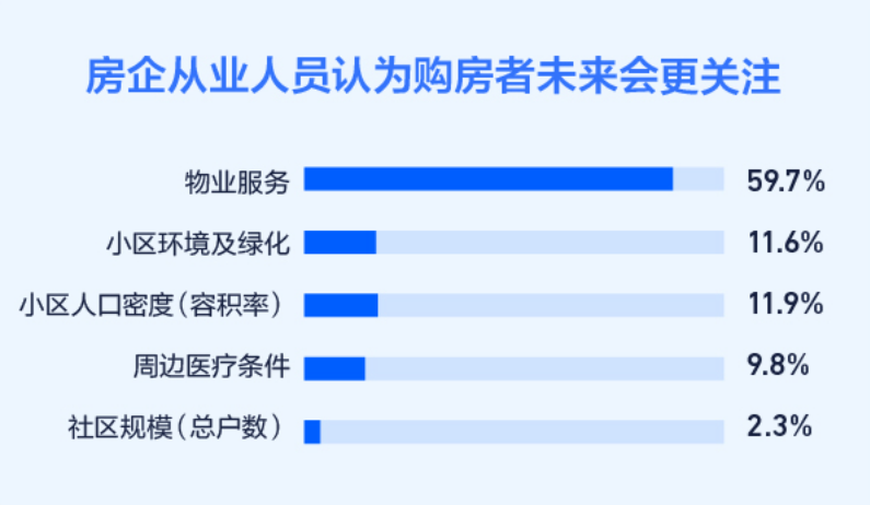 武汉经历两轮疫情,物业扮演了重要角色,他们的服务质量和我们的隔离生活质量直接成正相关。在对房产从业者调查中我们获得的首要信息就是购房者未来的关注重中之重就是物业服务。